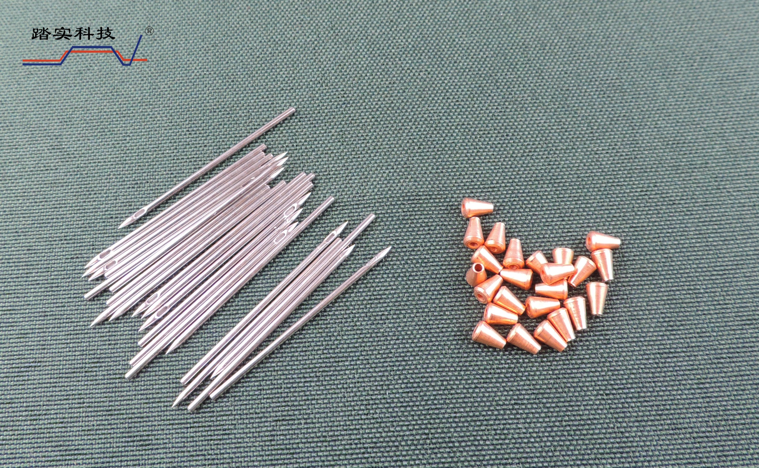 注意紫銅墊錐形方向朝向針頭兩通,針尾超出紫銅墊約1毫米,可以先輕擰螺母使紫銅墊不滑動(dòng),然后用尖嘴鉗調(diào)整與針尾的距離為1毫米,